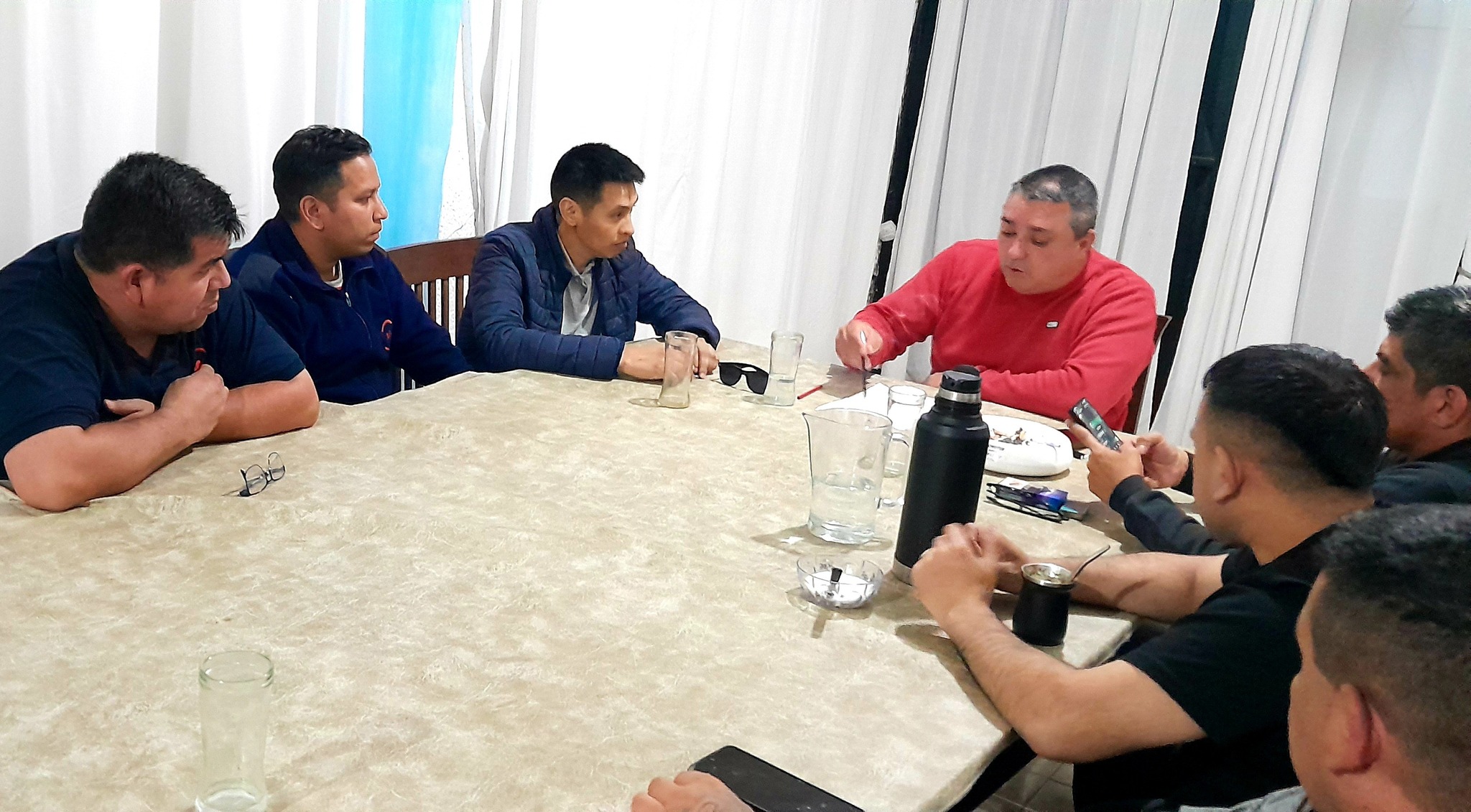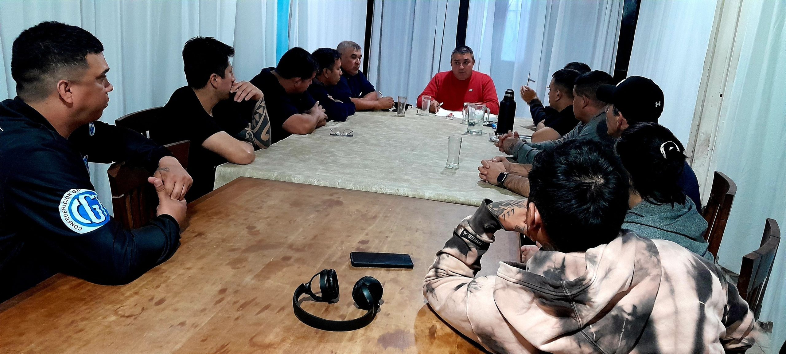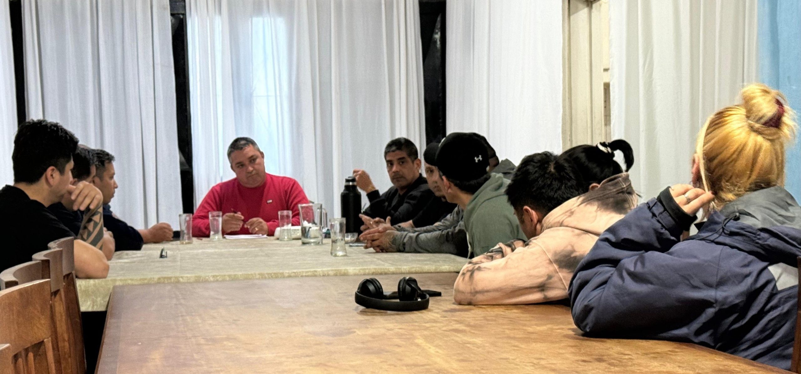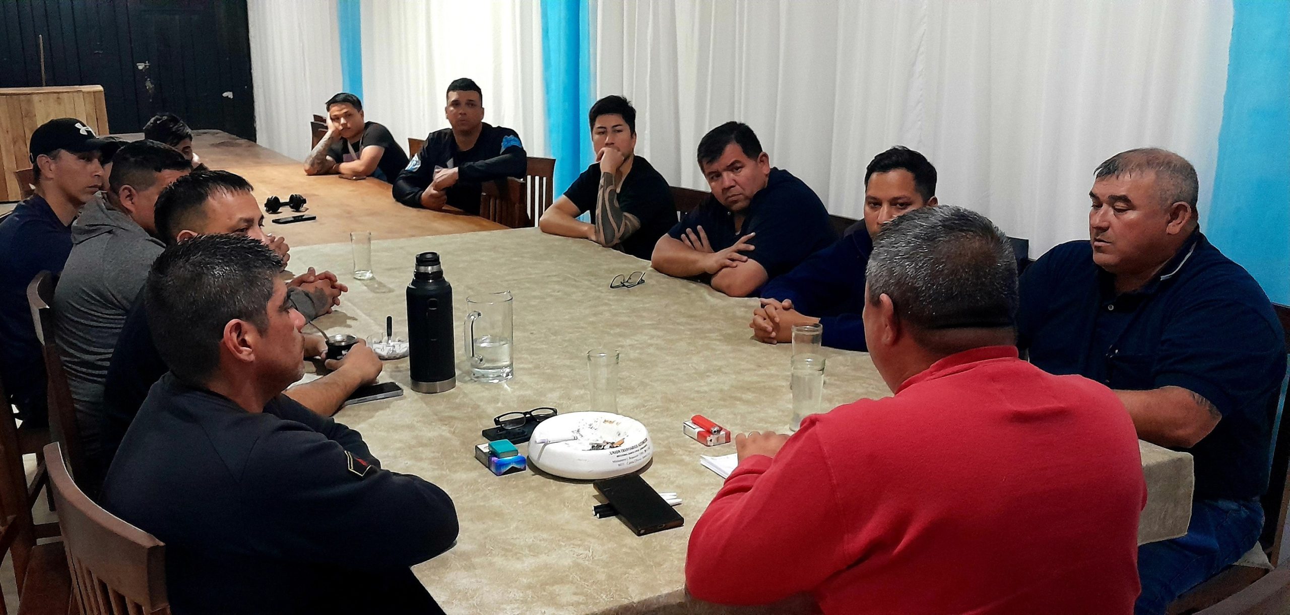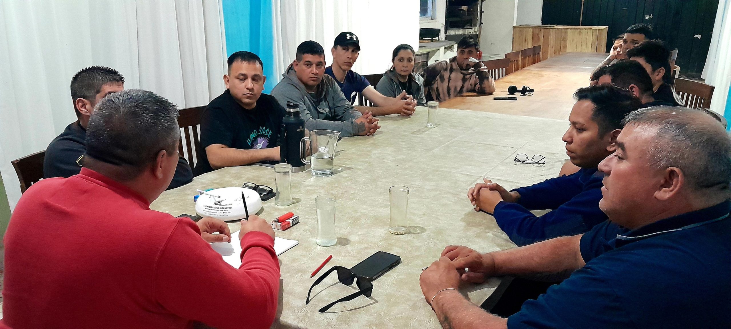 Hace instantes el Secretario Gremial Ariel Farias y el secretario del Interior Maximiliano Zapata mantuvieron reunion con el personal de Seguridad MV que presta servicio en Minera Santa Cruz.